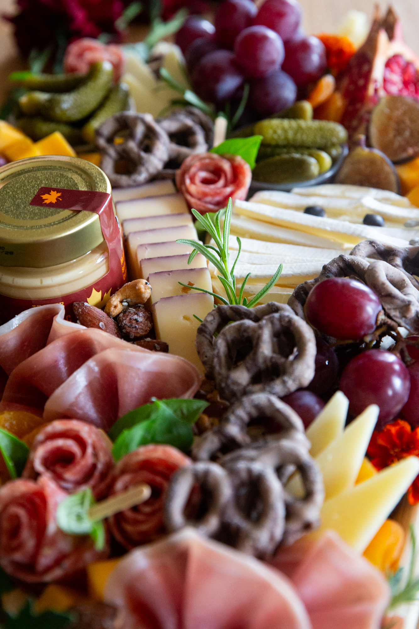Crunchy cornichons, nuts, and sweet treats like chocolate-covered pretzels